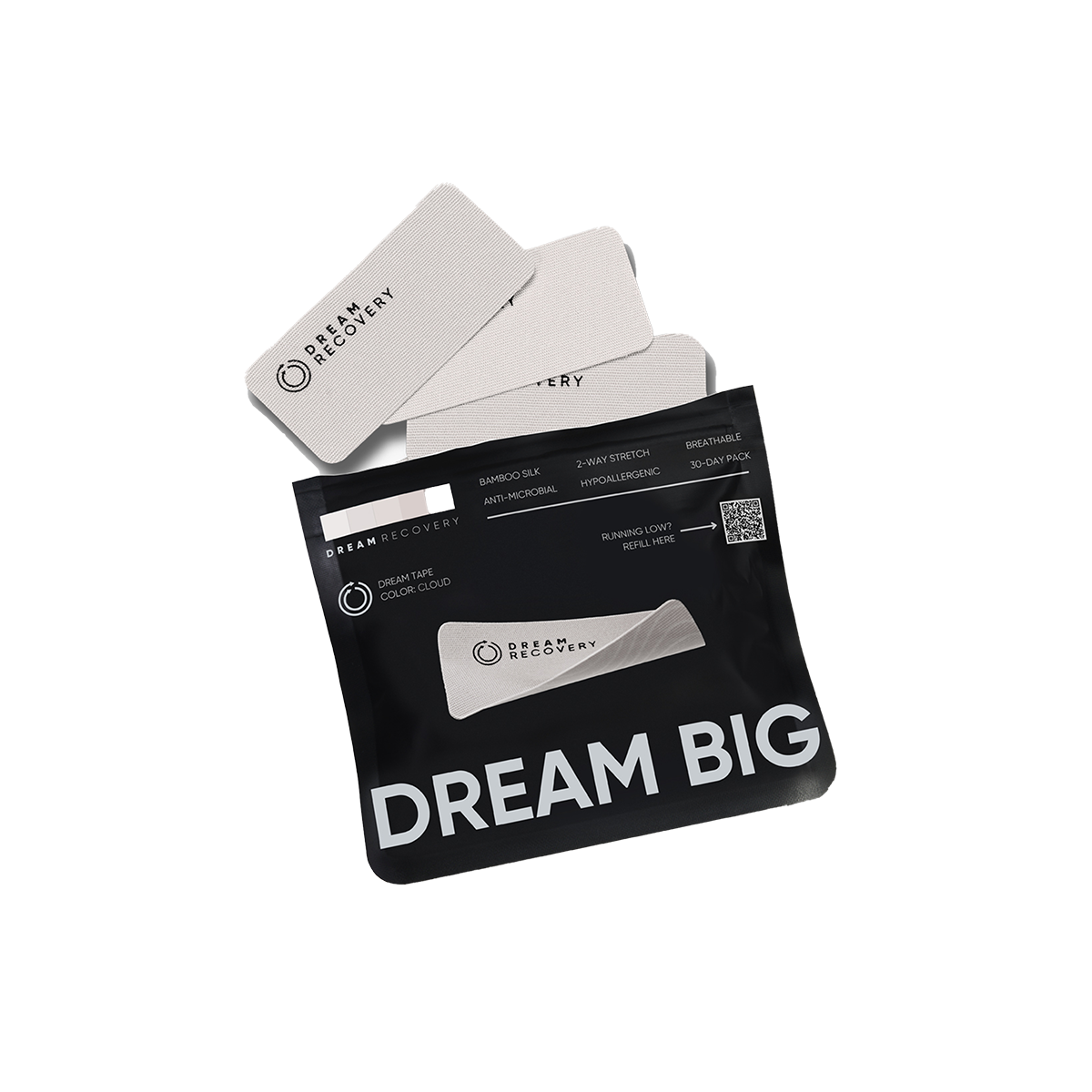 Dream Mouth Tape is a hypoallergenic, single-use tape made from organic bamboo silk and medical-grade adhesive to encourage nasal breathing throughout the night. Designed to gently keep your lips sealed while you sleep, it helps reduce snoring, dry mouth, and nighttime breathing disruptions. Plus, it stays securely in place for over 12 hours, even for those with stubble or a beard.