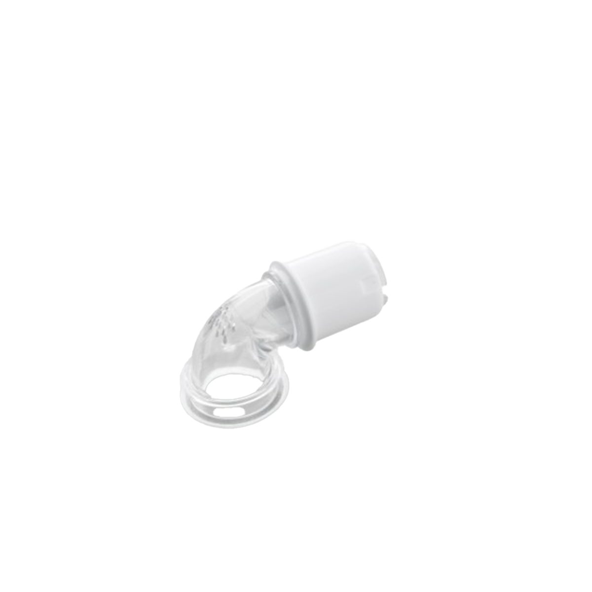 The Philips Respironics DreamWear Elbow With Swivel is a replacement part designed for all DreamWear CPAP masks, including full-face, nasal, and nasal pillow styles. It attaches at the top of the mask frame and connects the hose securely, directing it over your head to reduce pull and drag. The integrated 360-degree swivel lets the tubing move smoothly as you change positions during sleep and the quick-release feature makes it easy to attach and detach.