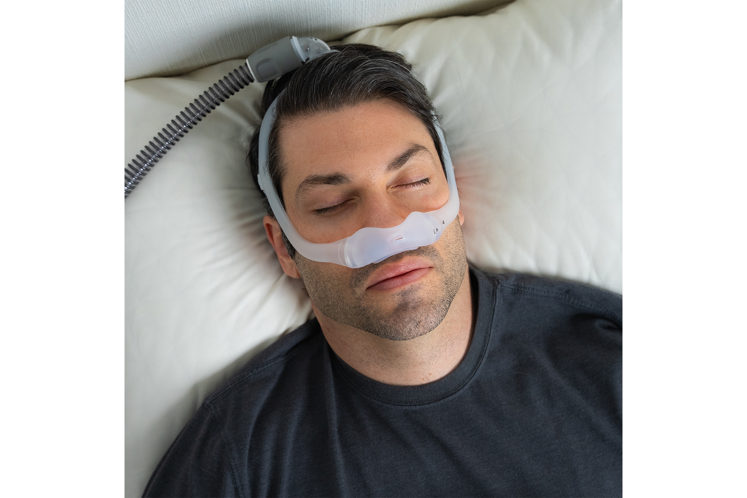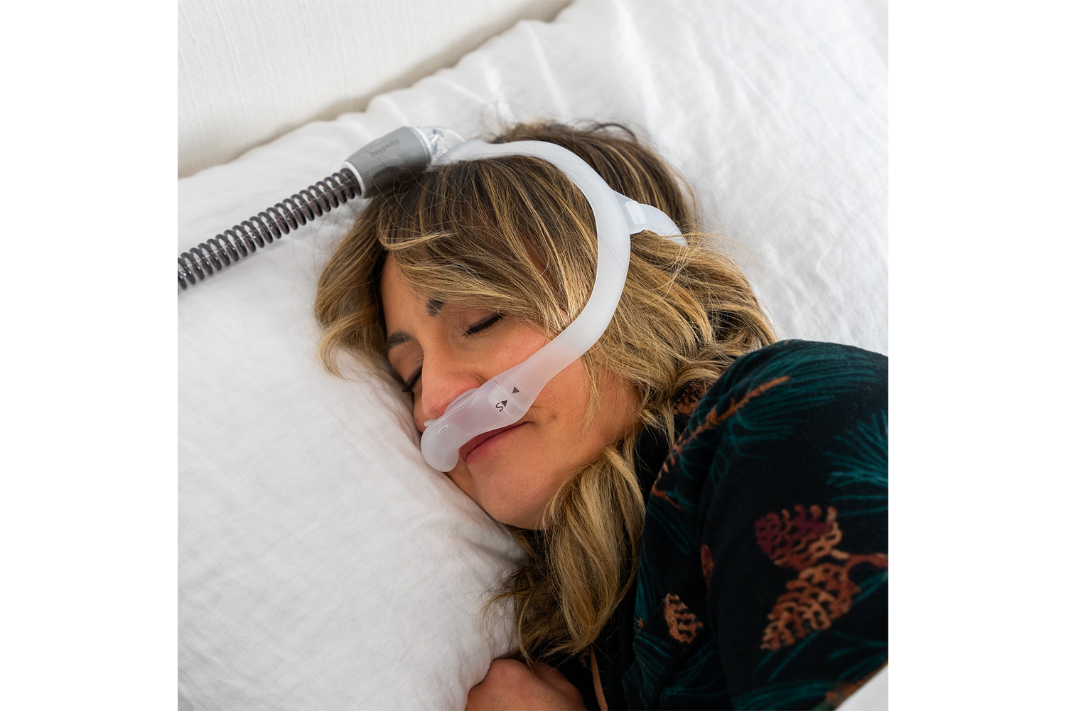 - A top-of-head hose connection helps keep tubing out of the way for combination or active sleepers.