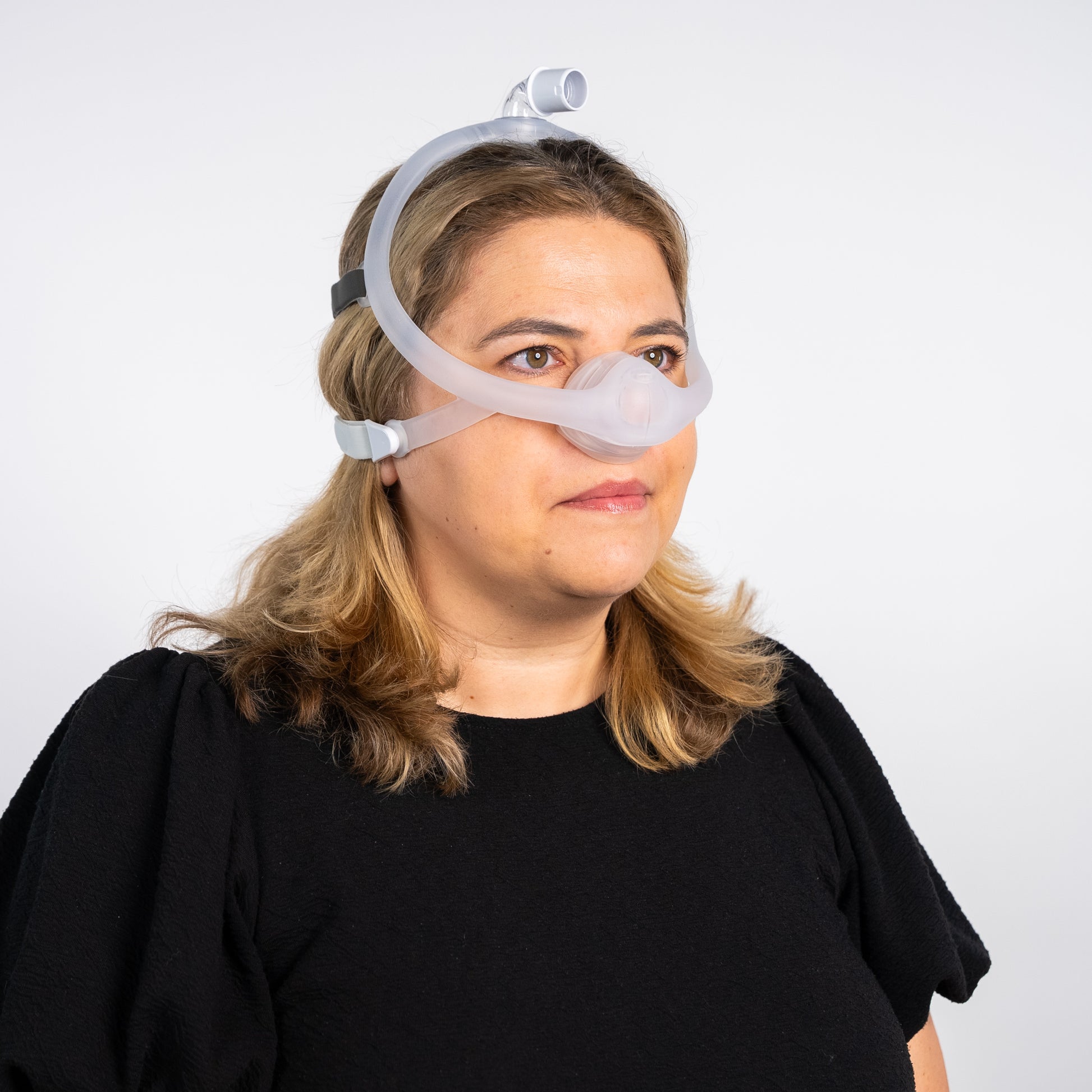 With the top-of-the-head mask design, the DreamWisp allows freedom of movement. The tubing will be out of your way! You are free to change sleeping positions throughout the night, without worrying about how the mask stays in place while sleeping.