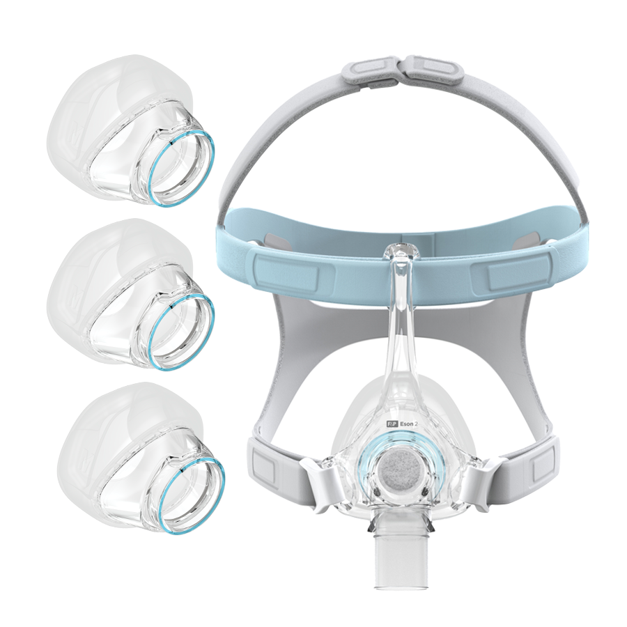 - F&P Eson 2 features VisiBlue™ highlights to provide visual cues for simpler, quicker, and more intuitive patient education and to aid the patient in fitting, disassembly, and reassembly.