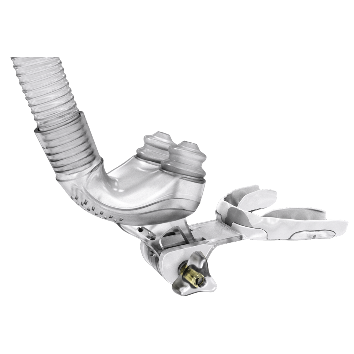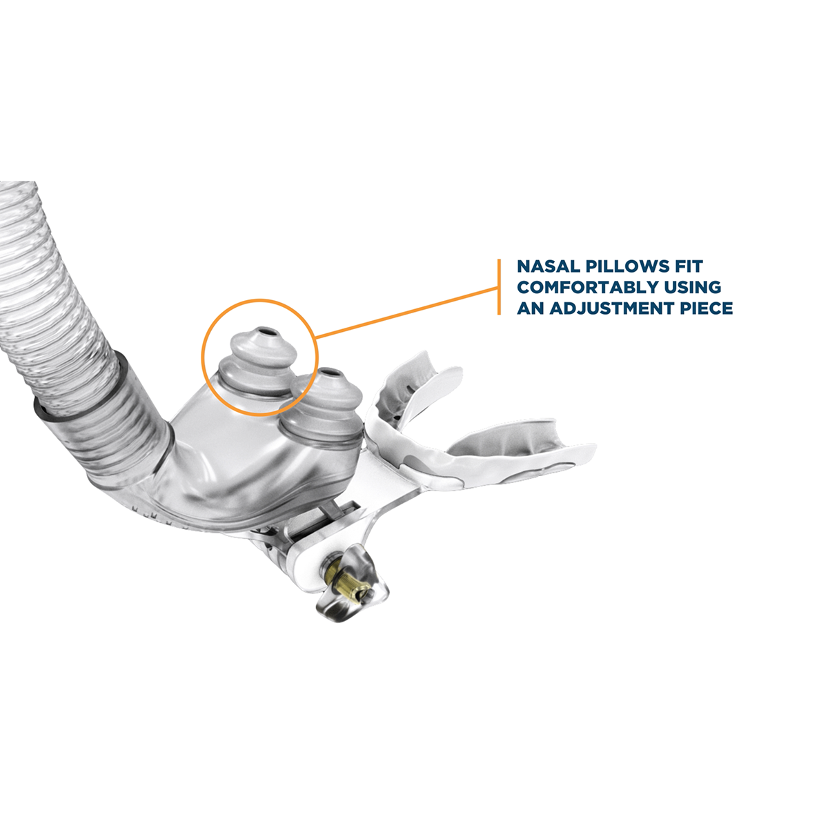 The myTAP PAP is an innovative nasal pillow mask that provides a secure, comfortable fit — all without traditional headgear. Instead, a soft, re-moldable mouthpiece anchors the mask in place, offering a personalized and stable seal throughout the night. Designed for comfort and performance, myTAP PAP features one of the quietest exhalation ports on the market and boasts the lowest pressure drop of any nasal pillow mask available.