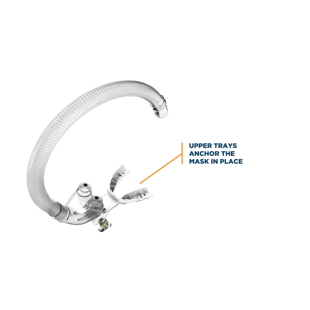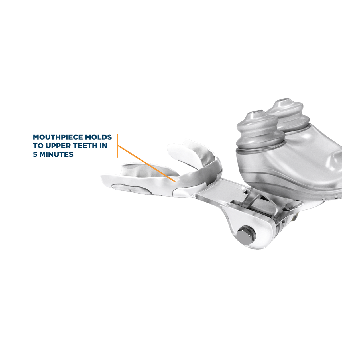 - No headgear required: Custom-fit mouthpiece anchors the mask securely and comfortably without straps or pressure points.