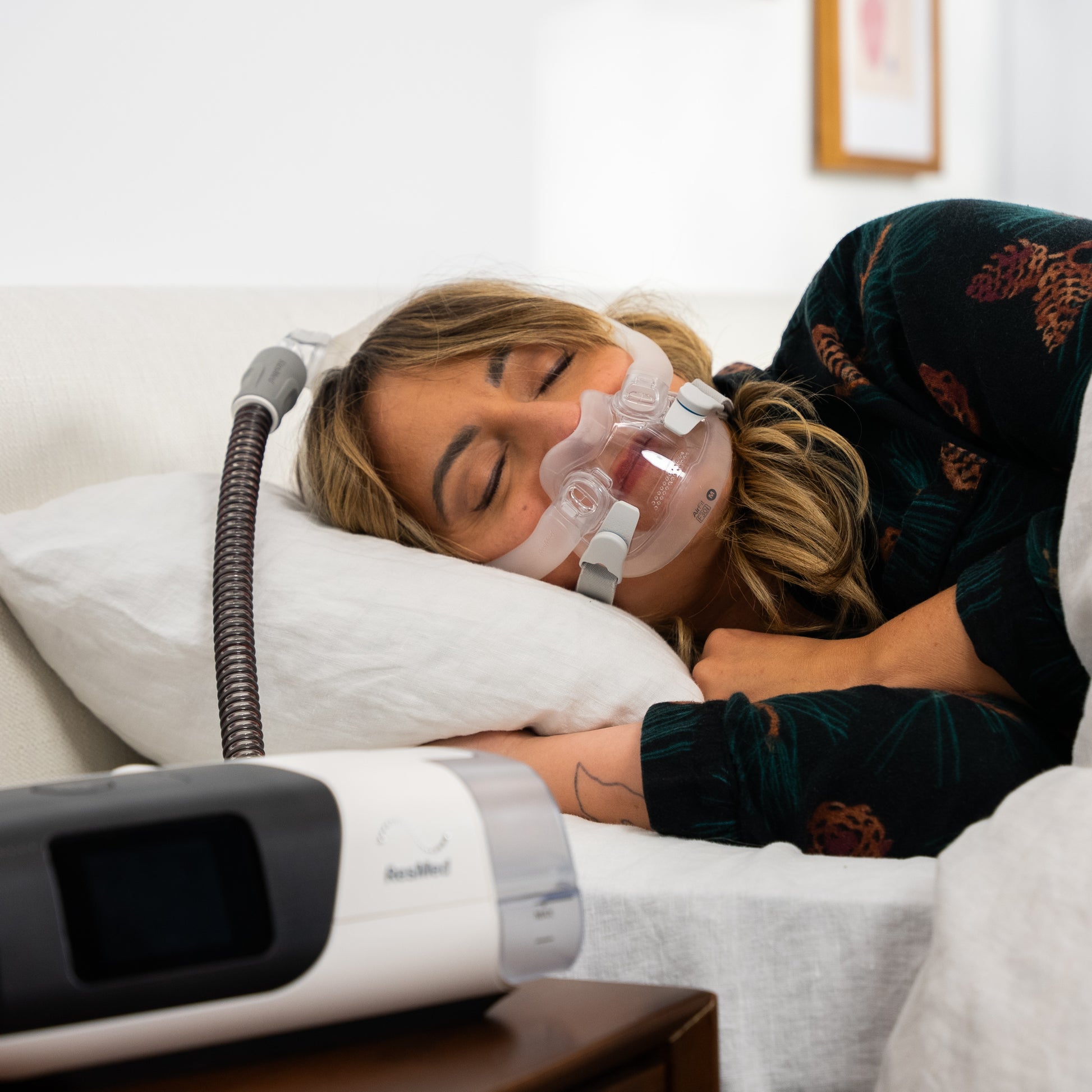 The ResMed AirFit™ F30i is a minimal-contact full face CPAP mask. It is designed to keep tubing out of your way, giving you a comfortable experience no matter what posiition you sleep in. Click here for the sizing guide from ResMed.