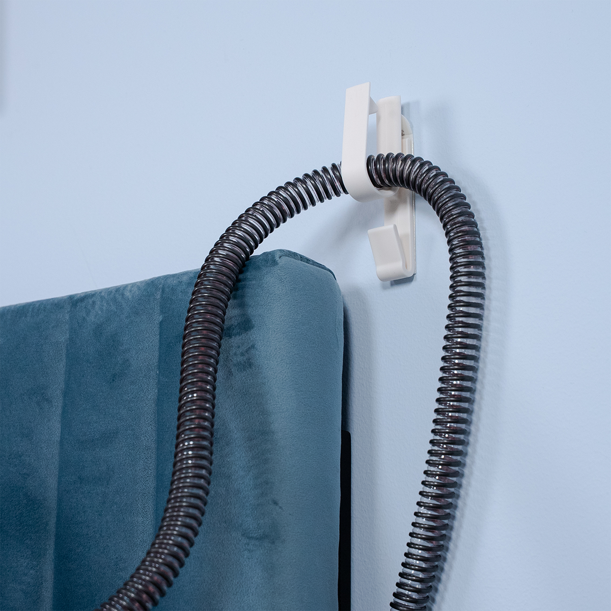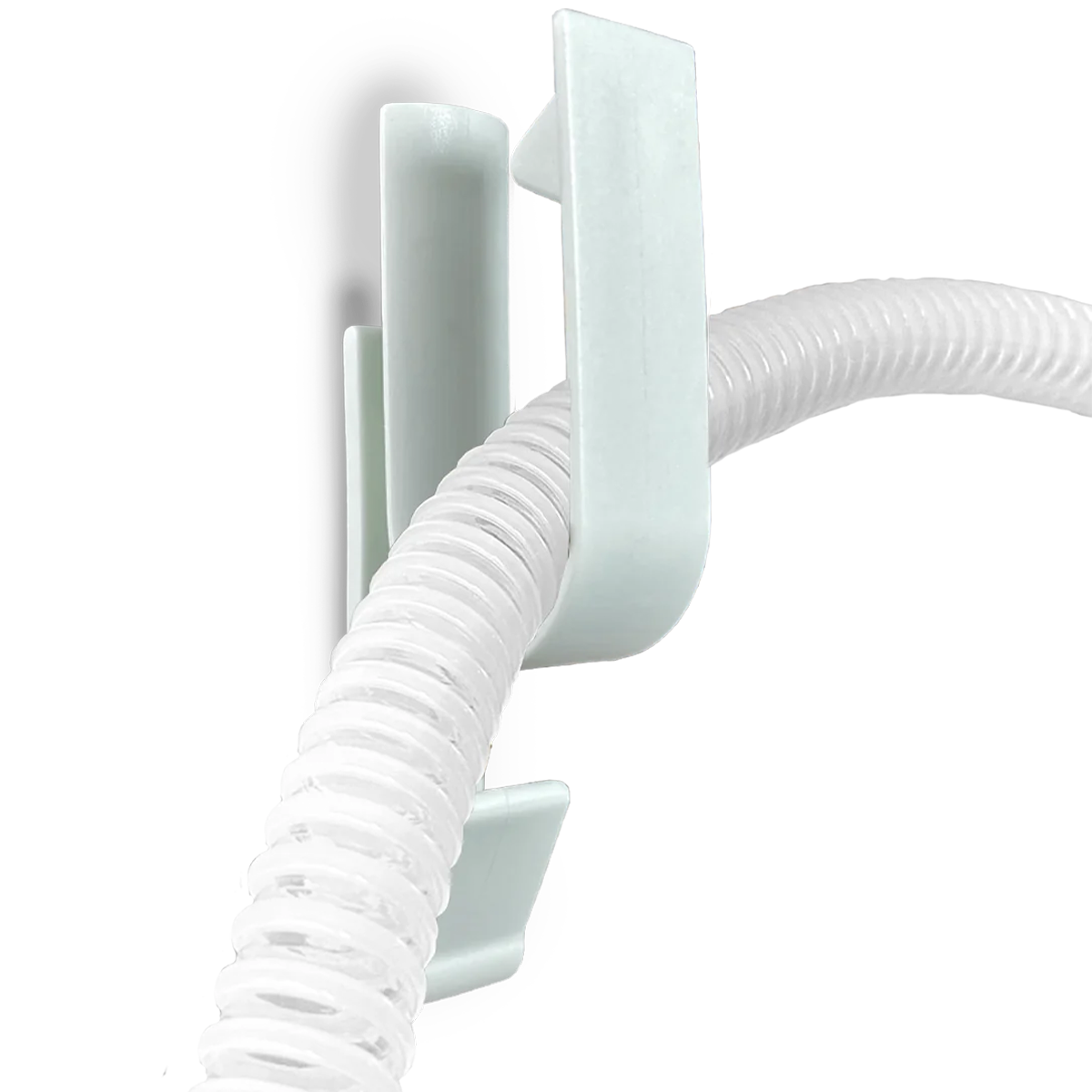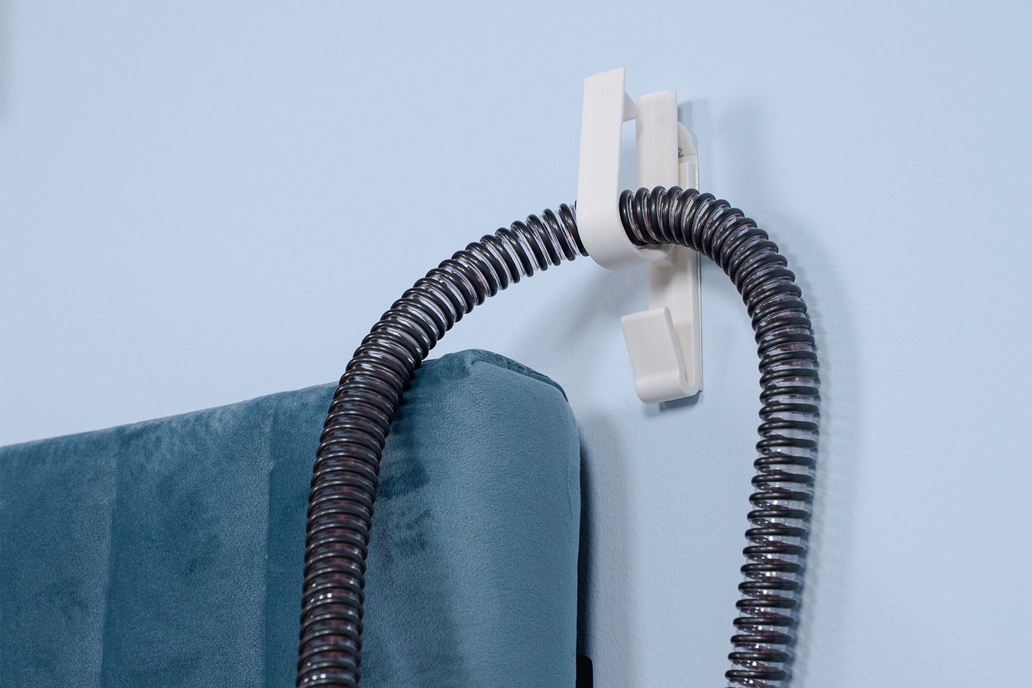 Don’t get tangled up in your CPAP hose while you sleep. The Original CPAP Hose Holder helps keep your CPAP hose out of the way so you can get a better night’s sleep. It reduces noise, prevents hose tangling or snagging on furniture, and allows smoother movement while you sleep. Plus, there’s a built-in hook for convenient mask storage.