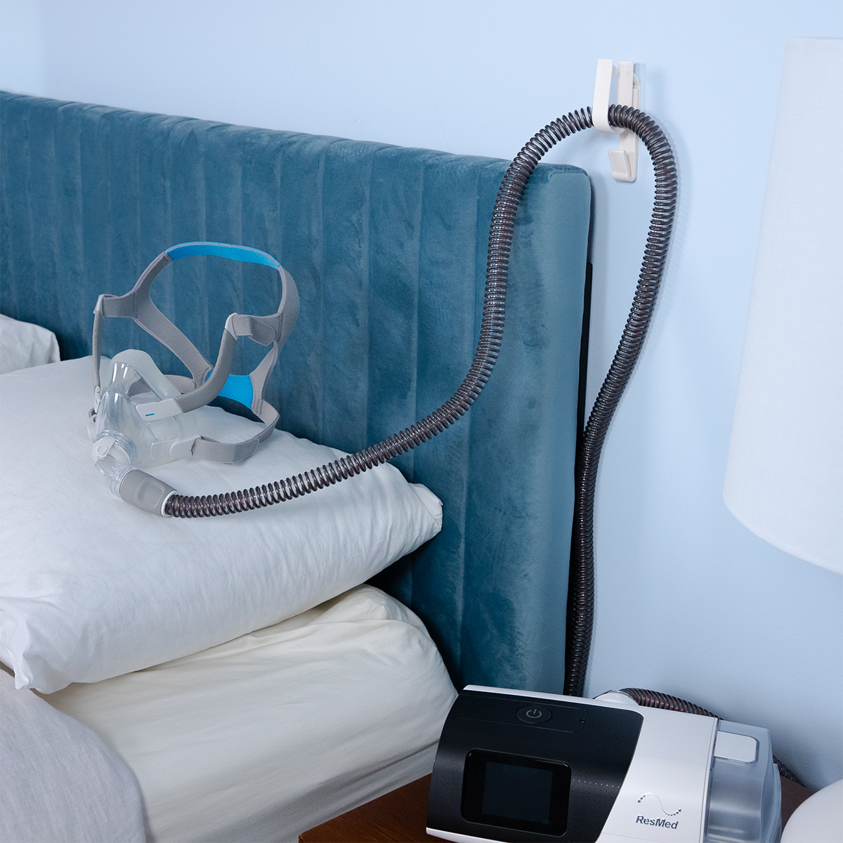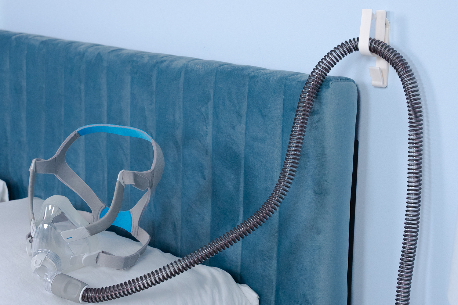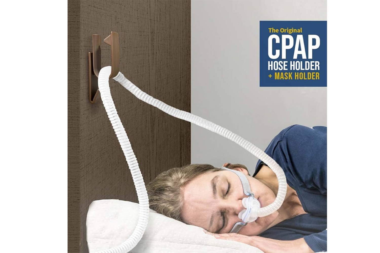 Don’t get tangled up in your CPAP hose while you sleep. The Original CPAP Hose Holder helps keep your CPAP hose out of the way so you can get a better night’s sleep. It reduces noise, prevents hose tangling or snagging on furniture, and allows smoother movement while you sleep. Plus, there’s a built-in hook for convenient mask storage.