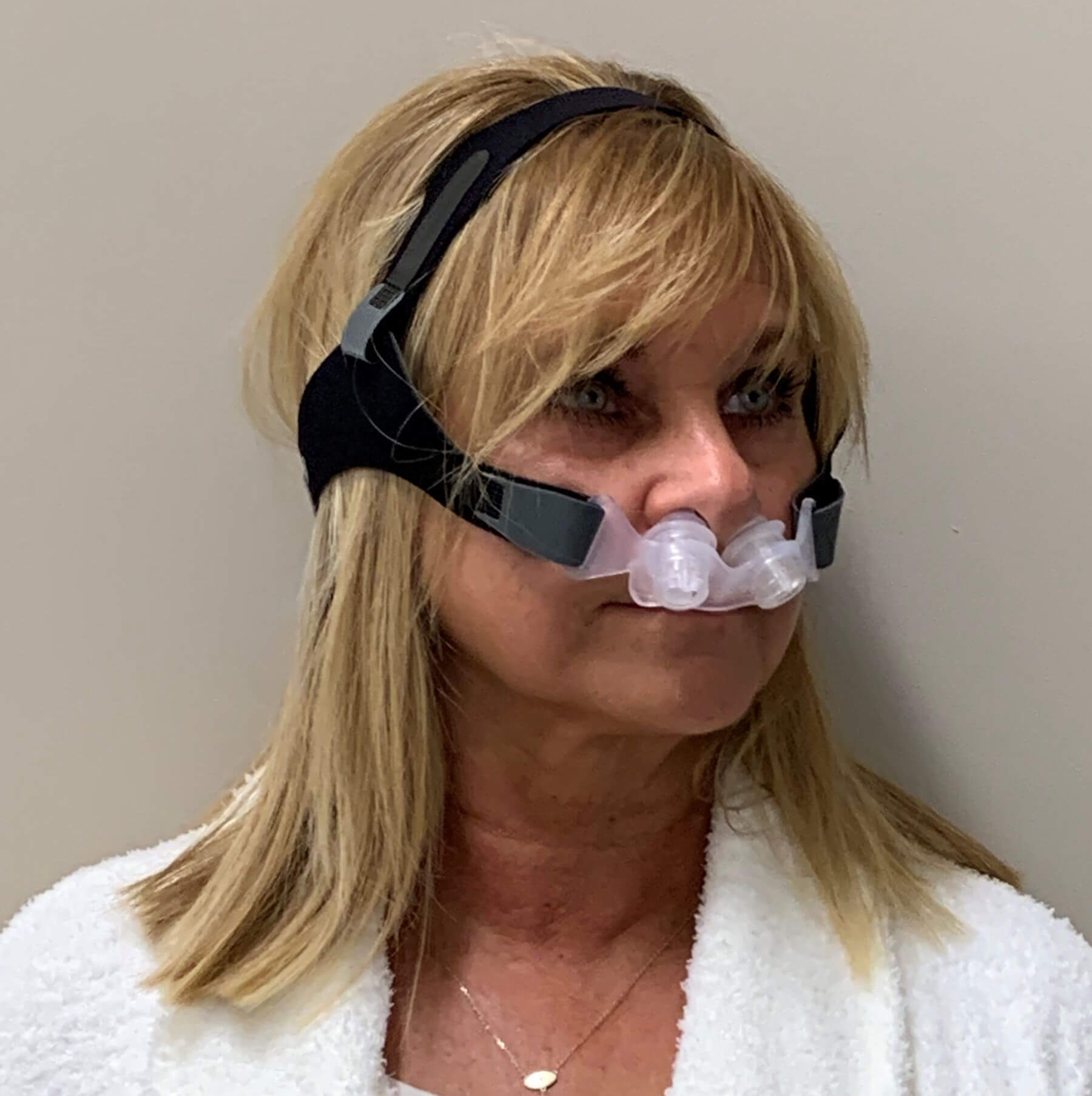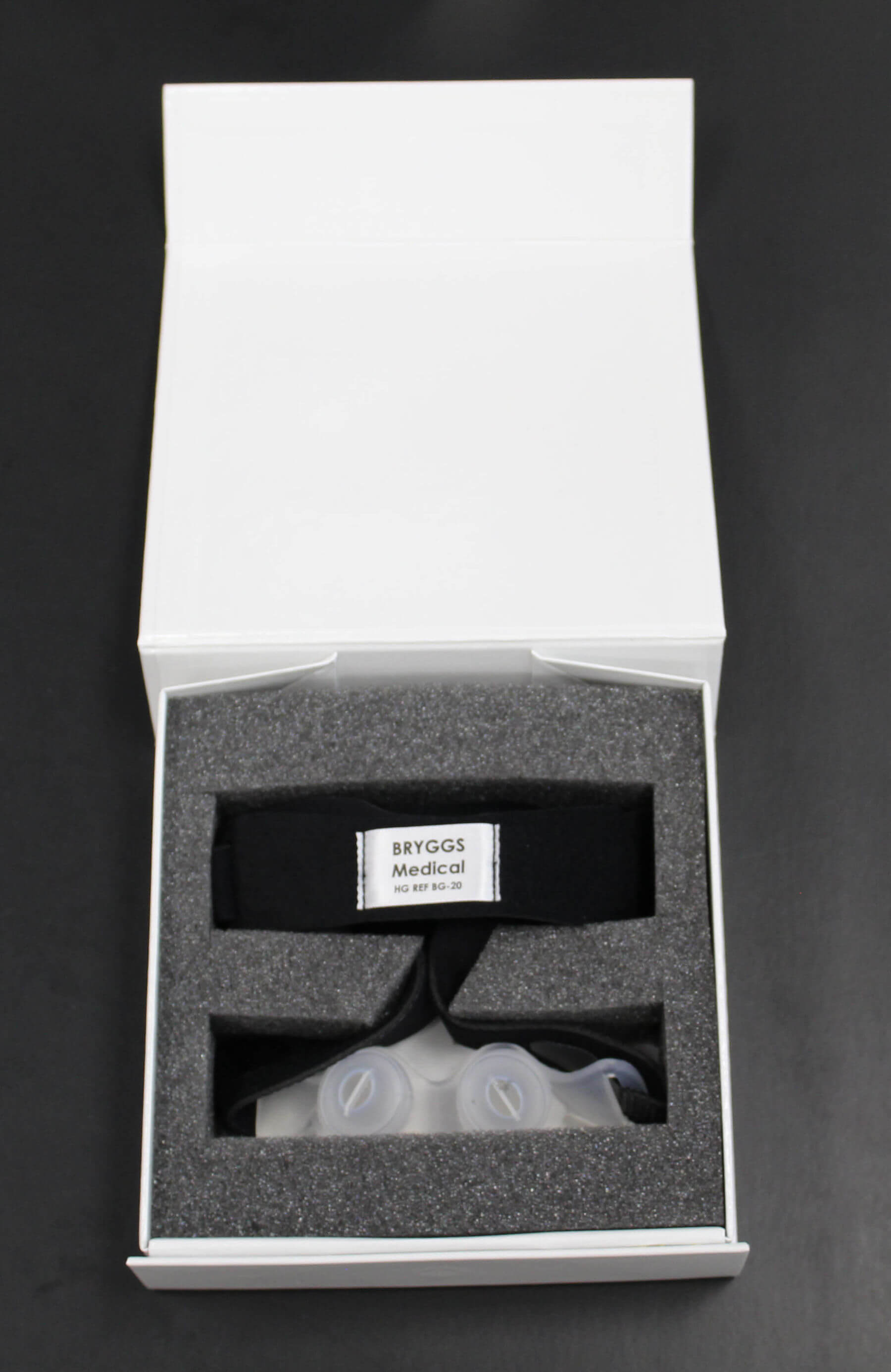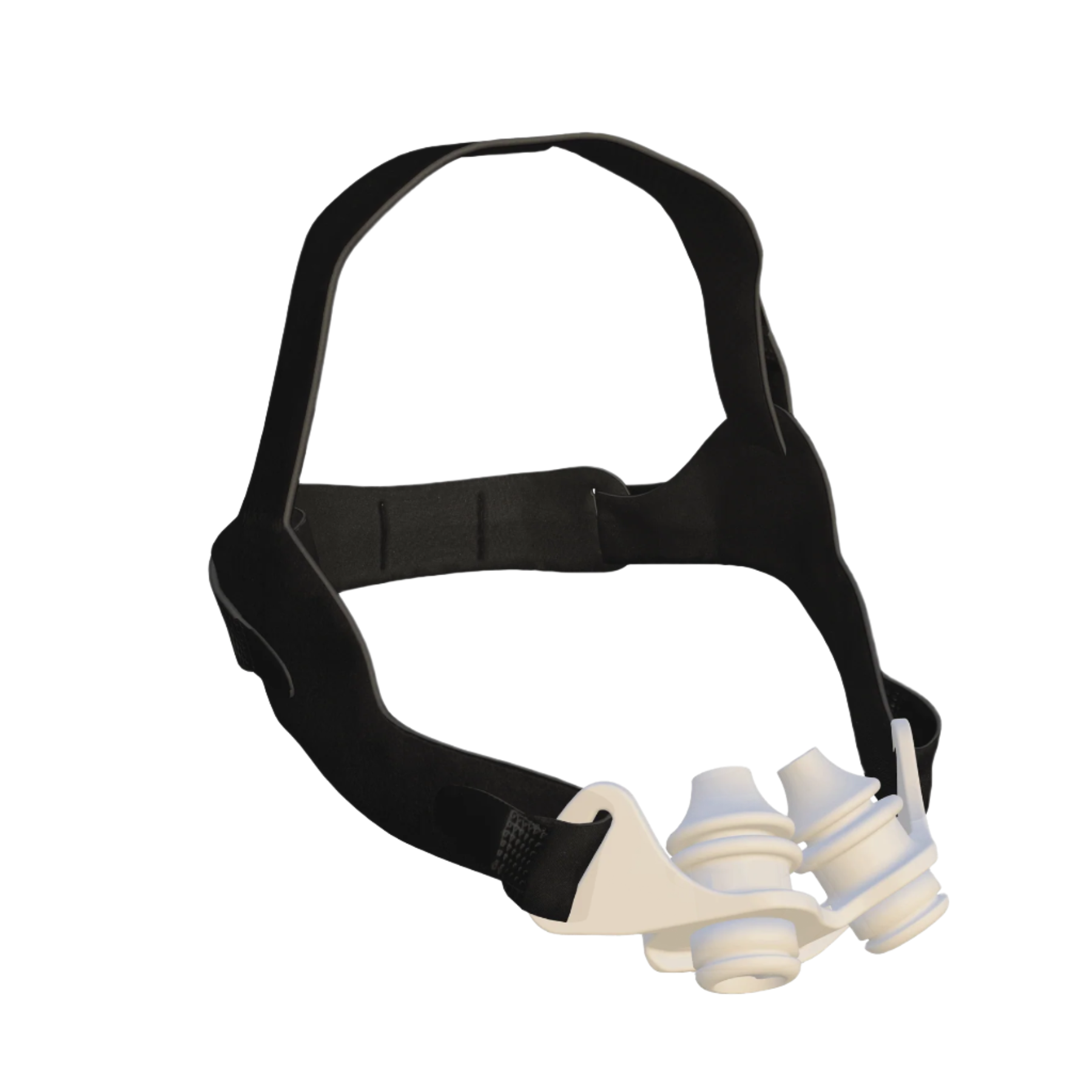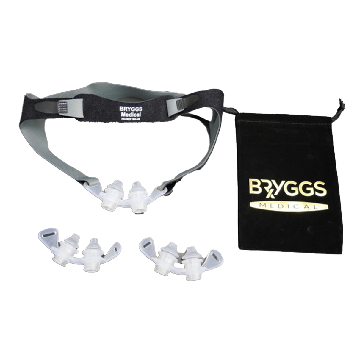 The ULTepap from Bryggs Medical is an expiratory positive air pressure device that does not require a hose or PAP machine. Both nasal cushions feature patented Rashidi-Sleeper valves that collapse when you inhale and inflate when you exhale. Your breath travels through a series of small grooves, creating back pressure and expanding your airway in the process. Soft, elastic headgear holds the cushions in place.