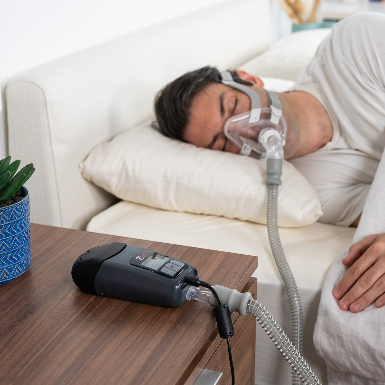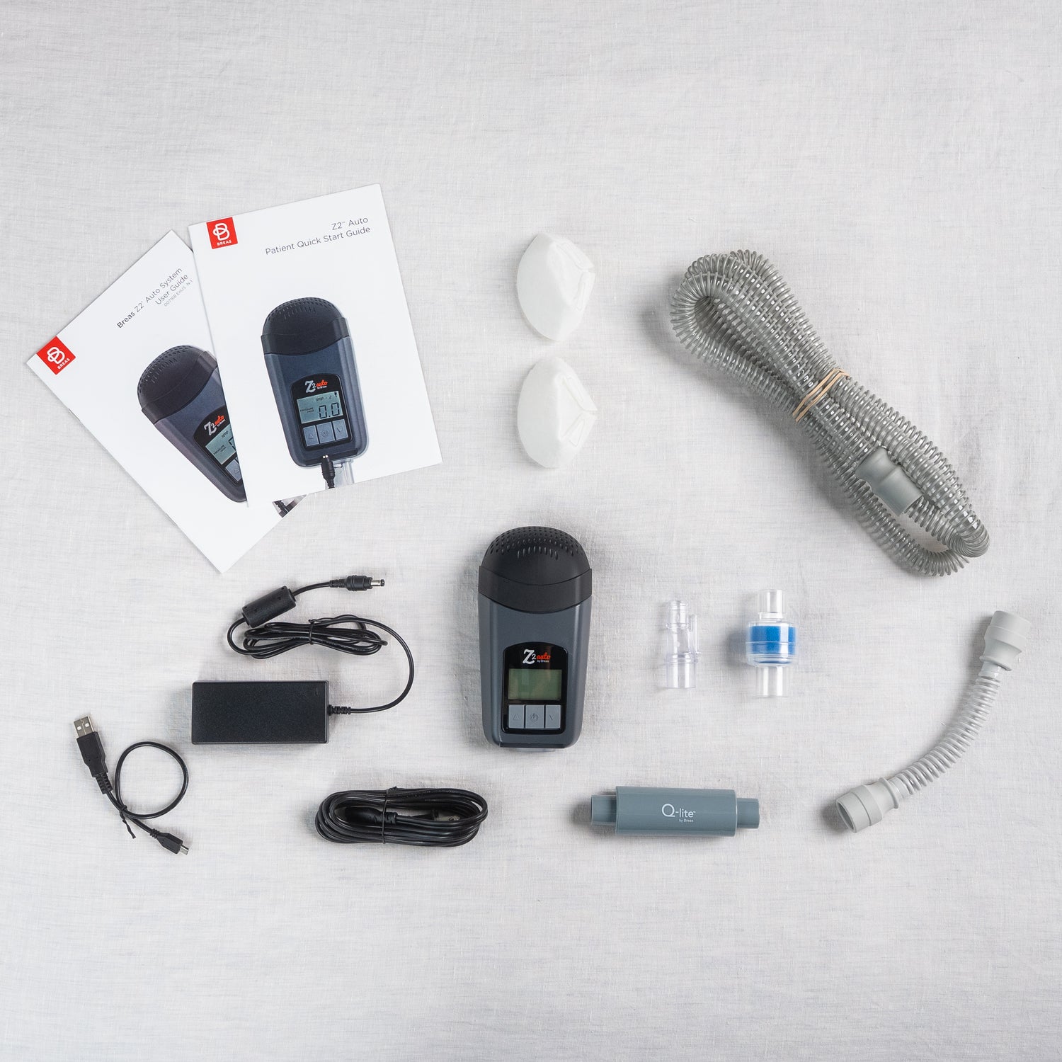 Your Z2 Auto comes with a power cord you can use to charge the device in an electrical outlet. The machine is also compatible with the Breas CPAP PowerShell external battery, which charges the Z2 Auto for up to two nights — though this accessory is sold separately.